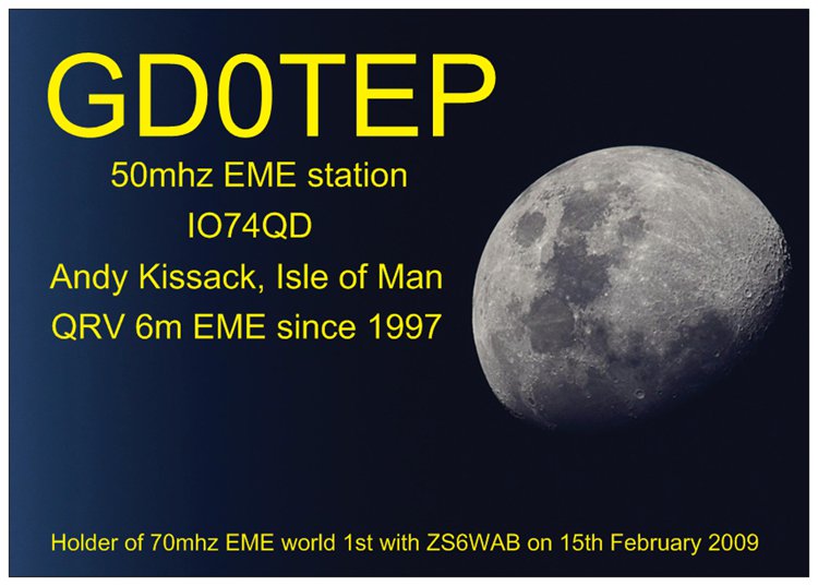 Weak signal EME using JT65 and CW modes 6m, 4m and 70cm. Updated October 2017.