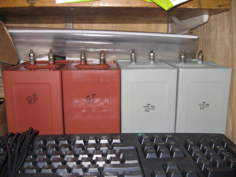 This next picture shows the PSU smoothing bank, it consists of FOUR 5kv 40uF caps, they will be assembled to give me 40uF @ 10KV, so I will have plenty of headroom rather than run the caps flat out at their rated value.