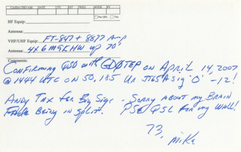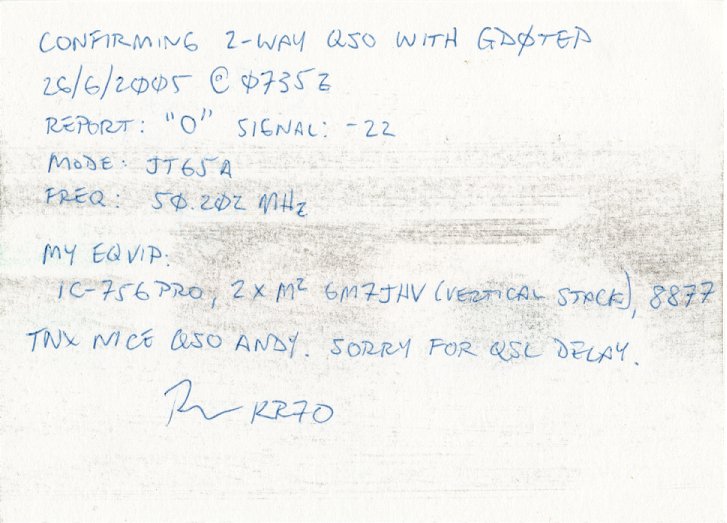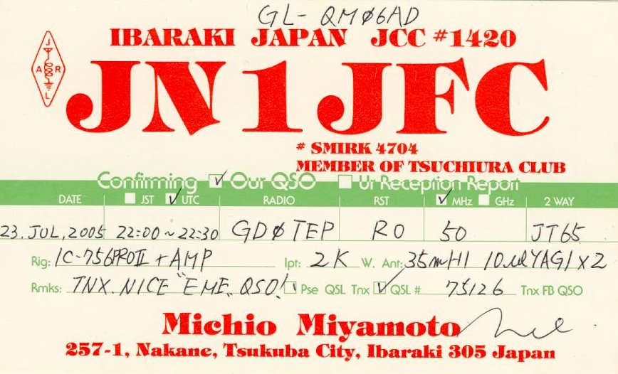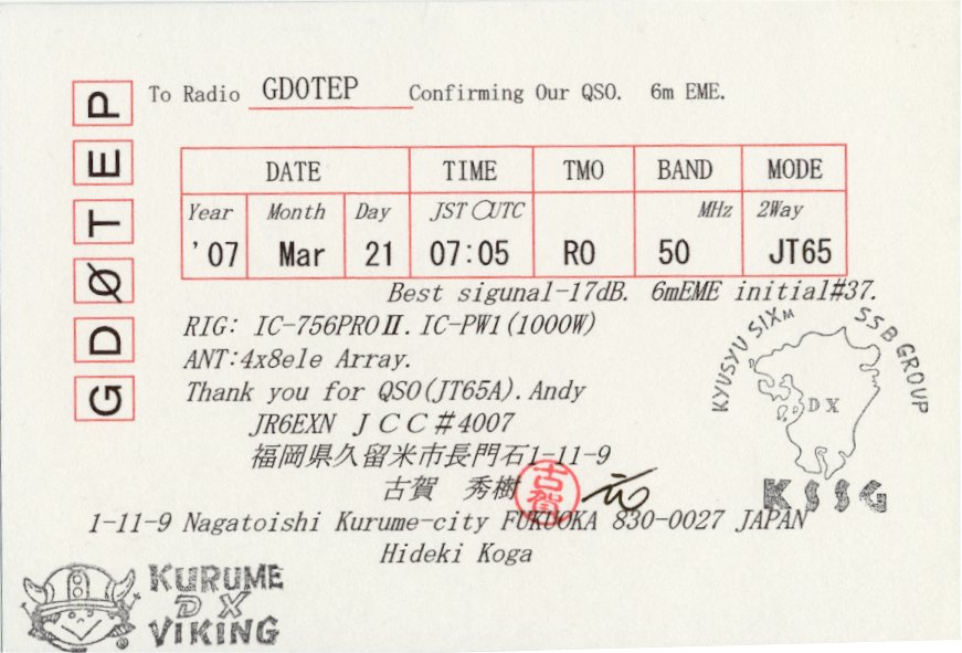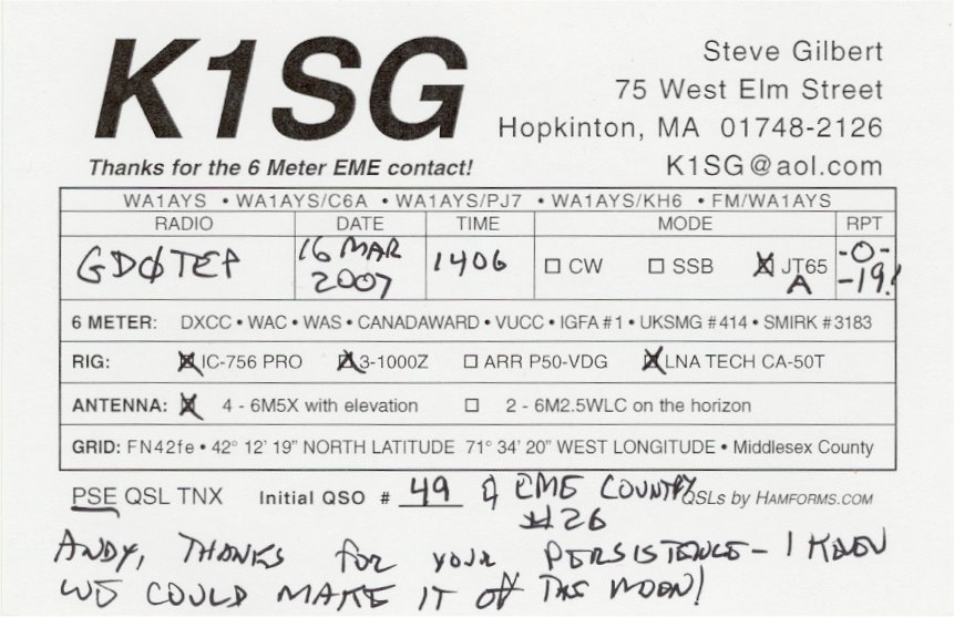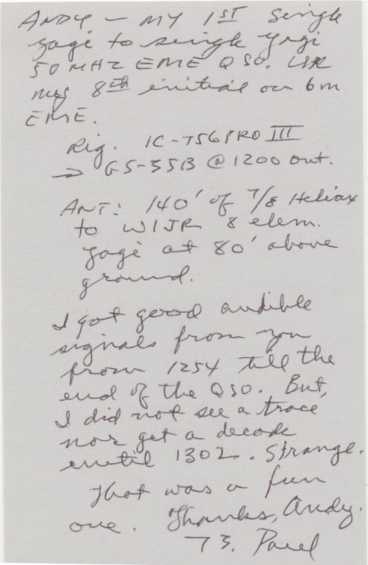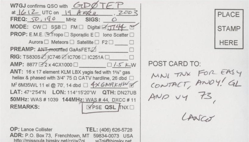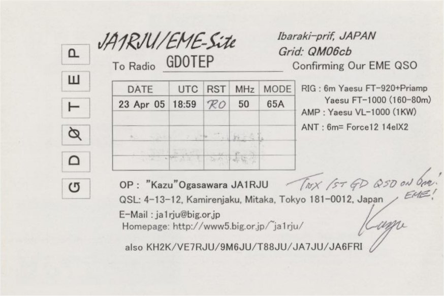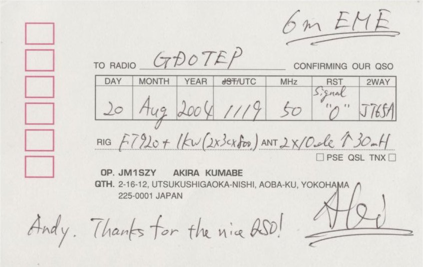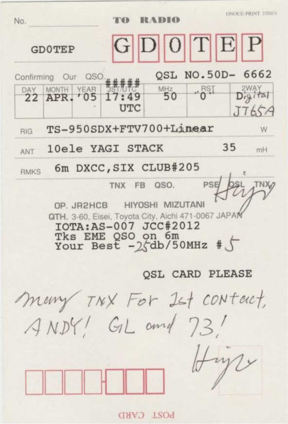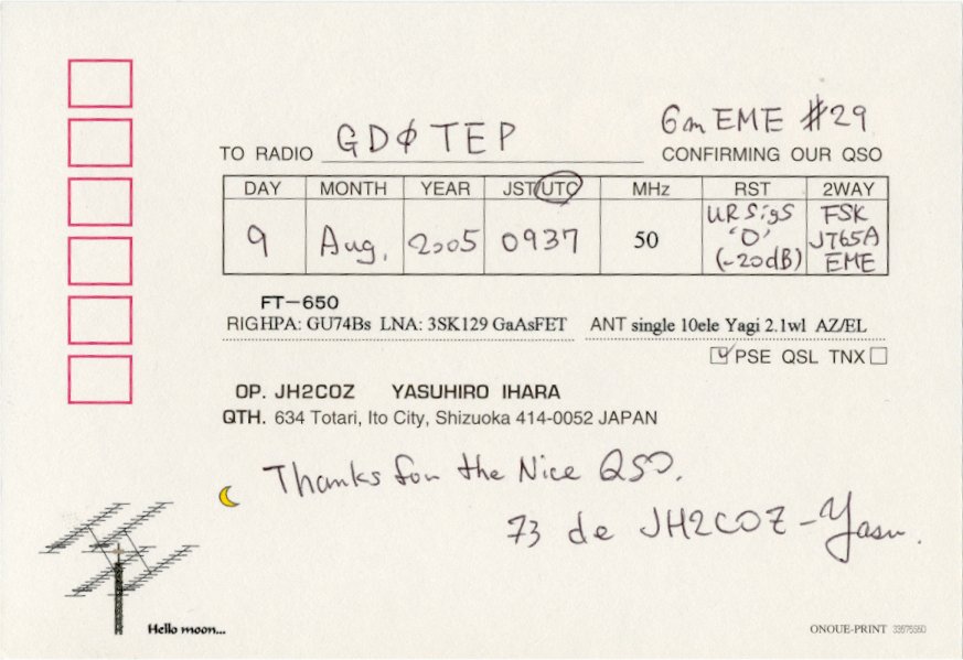 QSL cards from stations worked via EME on 6m