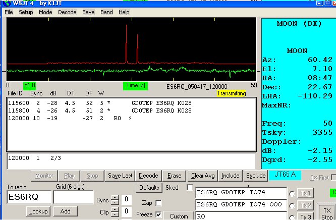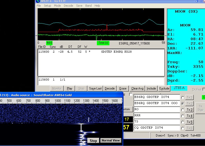completed with Kevin, NL7Z, my moon (as can be seen) is at 6.7 degrees up, and
