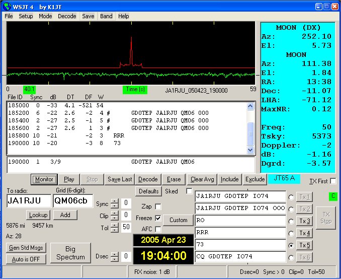After another sked that didn't work the previous day, here is the complete QSO with Kazu, JA1RJU. During this QSO there were more than one period were i could hear Kazu in the radio speaker.
