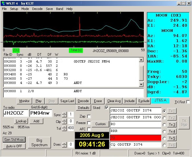 This is a QSO I had with Yasu, JH2COZ on the 9th of August. The best signal from Yasu that morning was his RO report, at -25dB