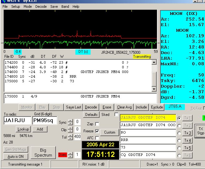 Unfortunately, I tried to quickly work JA1RJU right afterwards as can be seen in the 'To Radio' box, but I think faraday caused the sked not to work, we have re-arranged for another time, I hope it works!