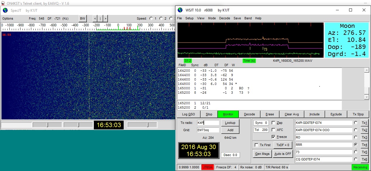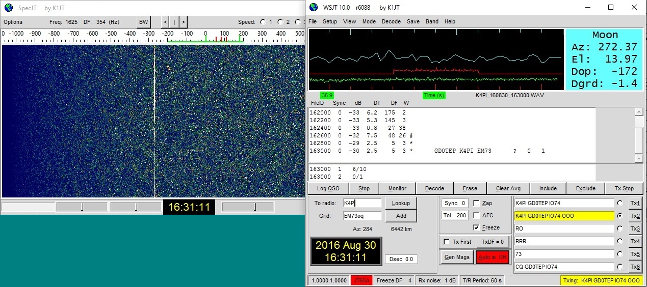 This is a contact i had with Mike K4PI, not great conditions, and perhaps one of my worst azimuth headings.