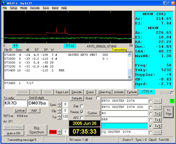 At 07:34 i received a good, strong set of RRRs from Robert and the sked was complete. The next period from Robert at 07:36 had a 73 in it, a nice touch!