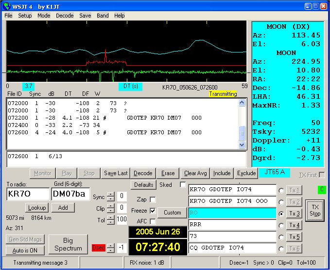 Robert and i have tried a few skeds prior to this one, each time without success, mainly due to amplifier, equipment, or some such failure, or even the WX on the island. This time (Sunday 26th June, 2005) we managed to complete. There's a nice clear set of callsigns and reports from Robert at 07:22 and 07:26, these resulted in my sending an RO report back.