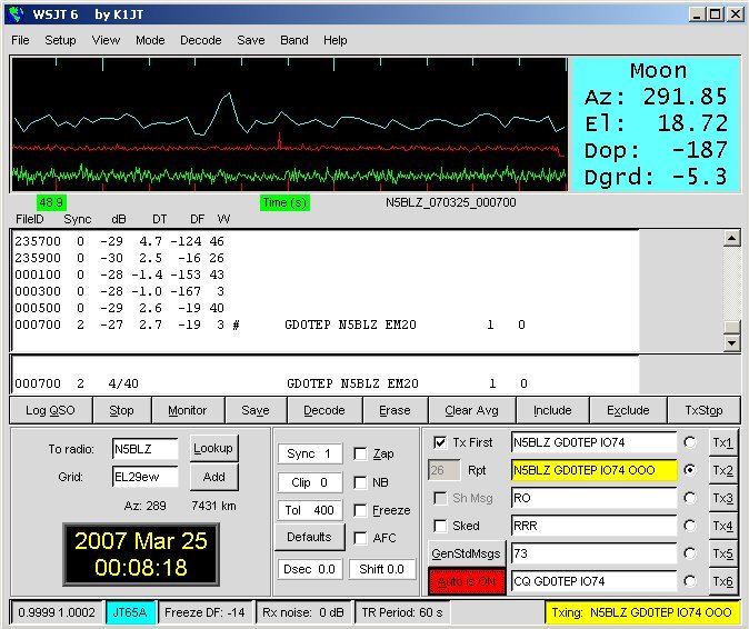 Another long QSO. Moon conditions on the 25th of March were not that good and it took some time before i heard Mick.